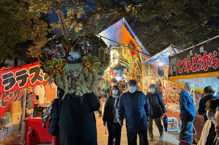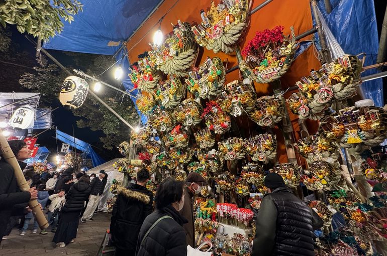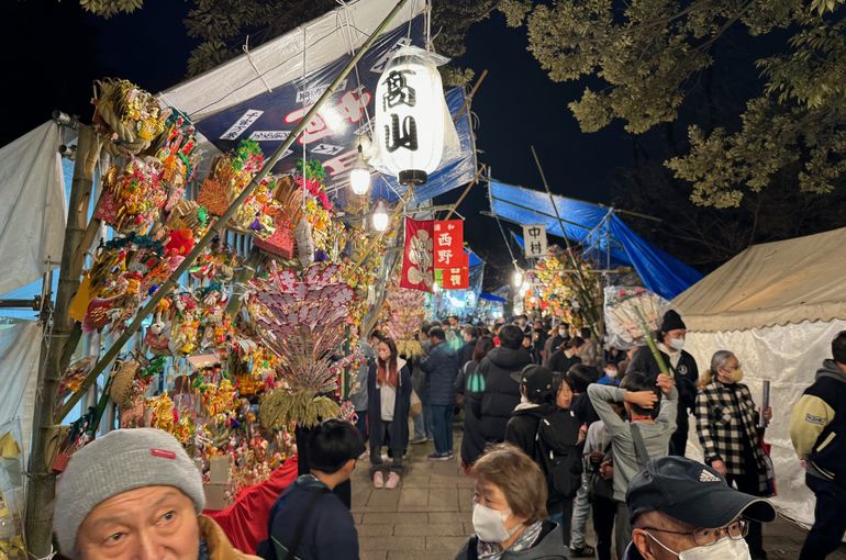 ものすごい人手ですが、出口から入ったので熊手を抱えていましたが