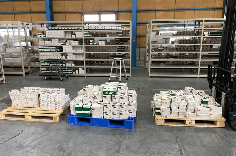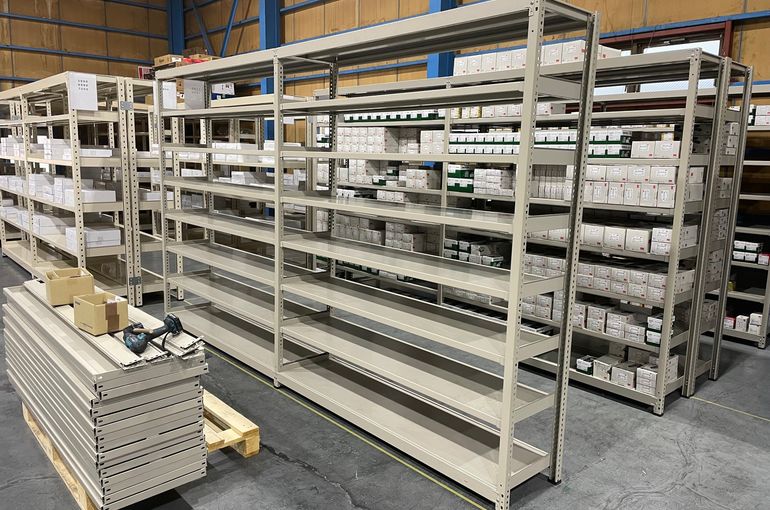 今日は昨日組み立てた棚にブレーキパッドを棚入れするところから開始です。